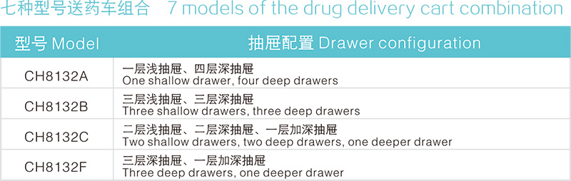 可增配置:伸缩式副工作台、36孔药盘、脚踩式垃圾桶、医用标签盒、储物盒、利器盒组、除颤平台。