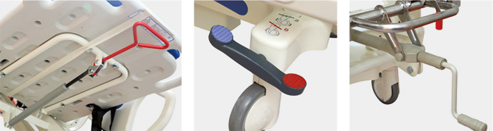 Trolley hi-lo easily operated by the manual crank at the foot section.