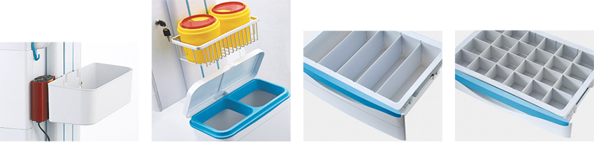 车体右侧配有摆放锐器盒网篮,下方有脚踩式带盖大污物桶,避免接触感染;