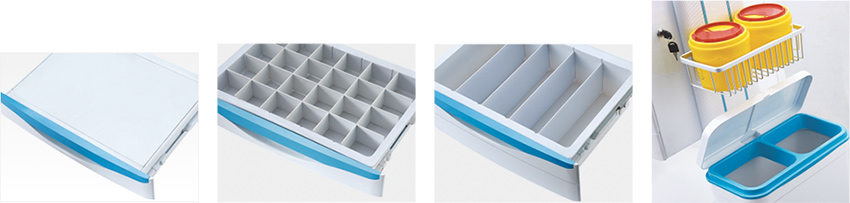 第四、五、六层为160mm高的大抽屉,内部放置大药盒,可摆放器械或其它物品;